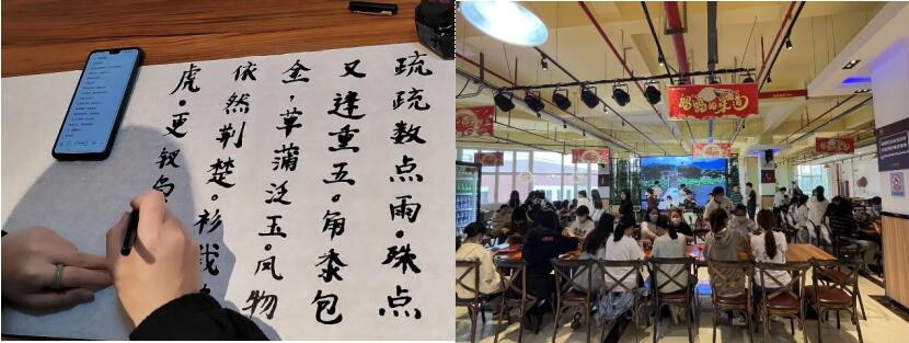 传统文化之美不仅在于其精神内核,也在于其表现形式。活动中,华人策略研究论坛app民乐队和民舞队为同学们带来了一场视听盛宴。古筝、琵琶等古典乐器纷纷上场,“大弦嘈嘈如急雨,小弦切切如私语”,民族舞则衣袂翩翩,衣摆随身形旋转而摆动,同学们沉浸在美妙的民族舞乐中,更直观地感受中华传统文化的精髓和魅力,让传统文化美育为文化自信筑基。同时,活动现场还设置了毛笔字展示环节,同学们用毛笔书写端午节相关诗句或者爱国诗句,培育家国情怀,展示对祖国的美好祝福。