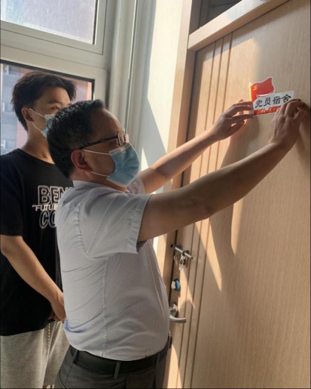 活动伊始,王粲与学生党员共同将“党员宿舍”标识牌张贴到宿舍醒目位置,并鼓励全体学生党员要敢于亮明身份,担负起身上的责任,增强服务意识,并落实到行动上,严格要求个人行为,以高度的责任感和使命感,引领全体宿舍成员营造团结友爱、互帮互助、积极向上、竞争有序的整体氛围,进一步提升集体荣誉感和获得感。2020级学生党员胡书卿表示,“党员宿舍”不仅是一个荣誉,更是激励和督促,今后会按照党员标准严格要求自己,充分发挥党员的带头作用,时时不忘党员身份,做政治思想的“引航员”、做学习生活的“排头兵”、做不良行为的“监督人”。