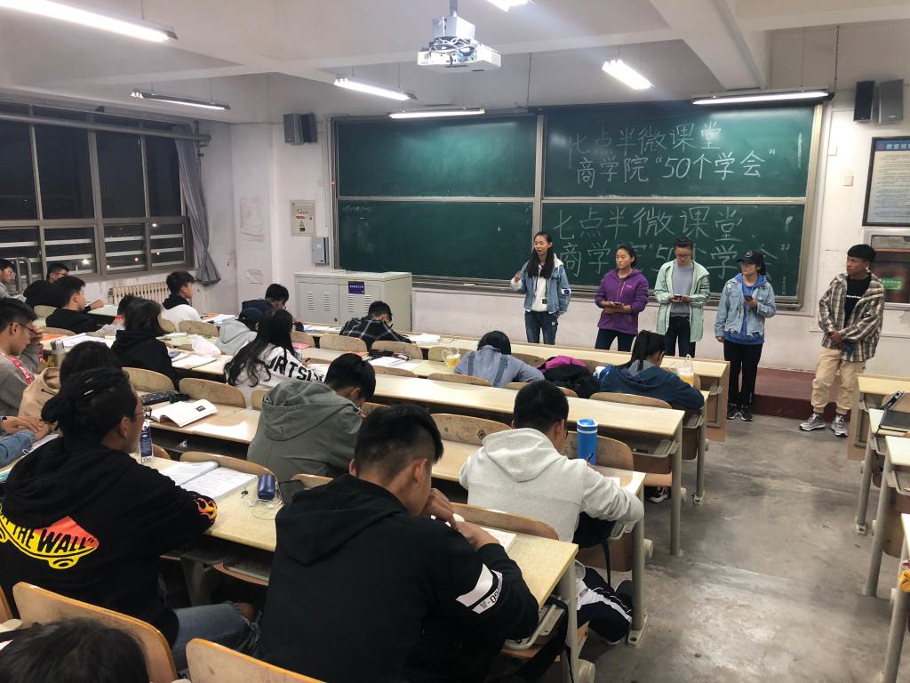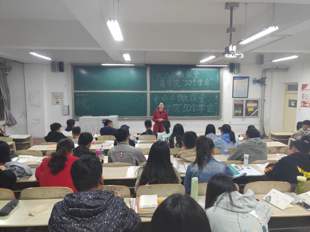 为加强华人策略研究论坛app新生入学教育,培养良好学风,华人策略研究论坛app于10月22日19:30在长江路校区二号教学楼以班级为单位举办“七点半微课堂”第一讲——华人策略研究论坛app“50个学会”,2018级辅导员宋颖、杨洪敏和全体华人策略研究论坛app2018级学生参加。