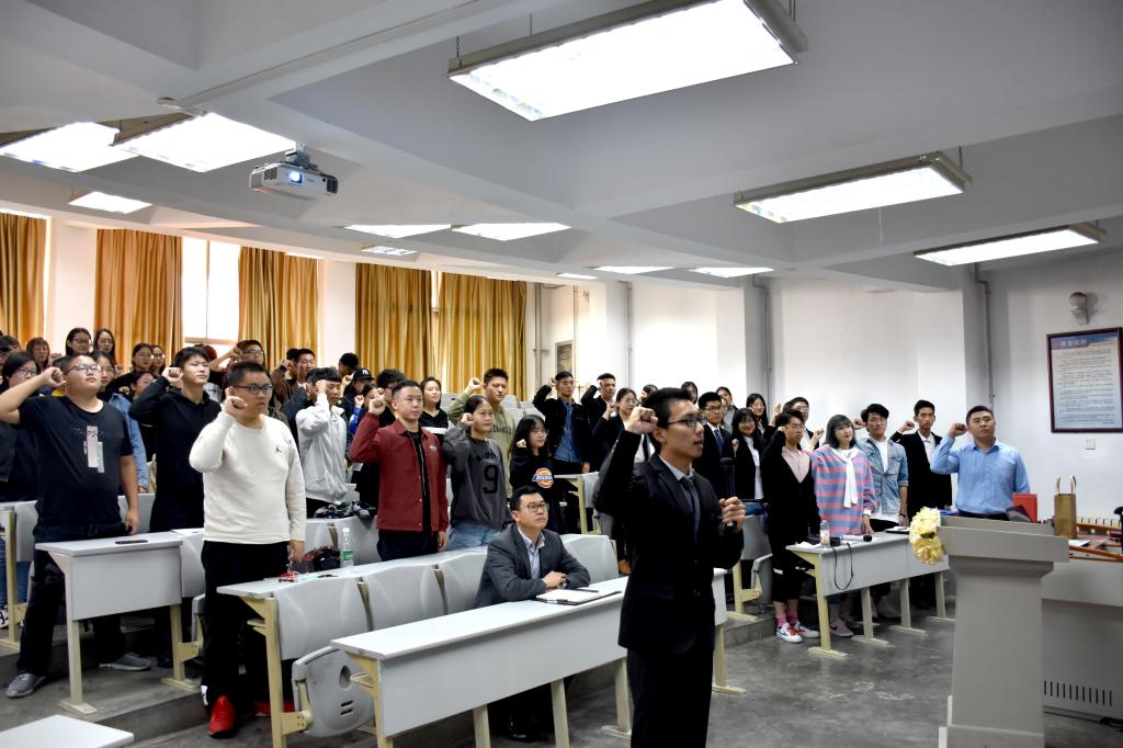 海豚班班长樊鹏瑞带领全体海豚班学员宣誓,并集体合唱由敬树勇老师和同学们一起创作的海豚主题曲《追问》,在铮铮誓言和激昂的合唱中进一步增强了海豚班学员的上进心、责任意识与担当意识。