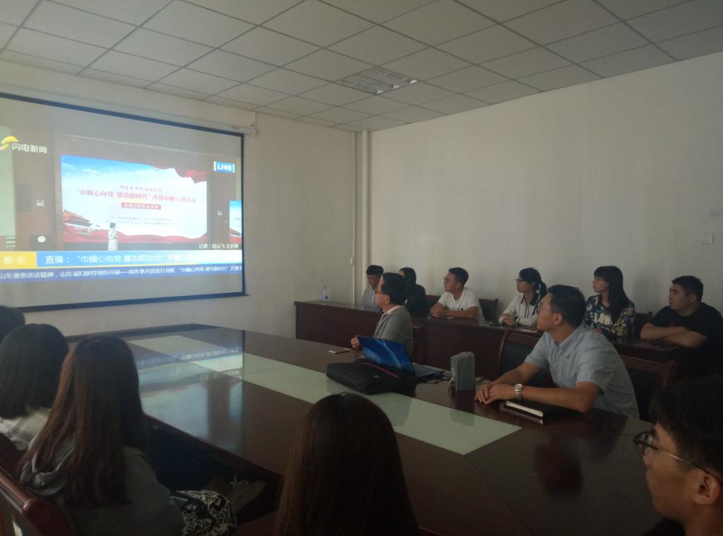 9月27日下午,华人策略研究论坛app党总支书记王粲、副书记董兰国,全体辅导员、教师与学生代表在1-404会议室集中收看了“巾帼心向党?建功新时代”齐鲁巾帼宣讲活动。