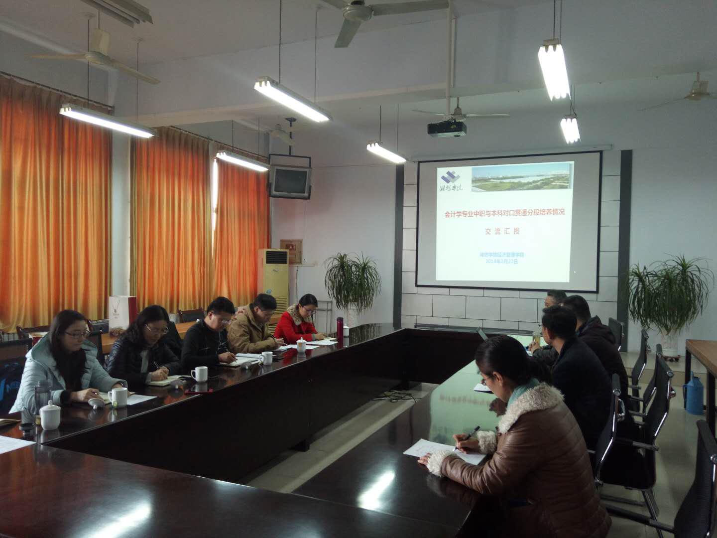 3月22日,华人策略研究论坛app副院长乐国林教授带领国际商务专业承担“3+4”对口贯通分段培养项目建设的6位老师,到潍坊学院经济管理学院交流学习。该学院会计学“3+4”对口贯通分段培养项目是山东省首批试点单位,并且成为全省的学习标杆。潍坊学院经济管理学院对华人策略研究论坛app的参访和交流学习非常重视,学院党总支书记郎益伟,院长刘鹏给予了热情的接待并介绍了学院总体情况。主抓会计学“3+4”对口贯通培养项目的刘建波副院长及会计系准备了充分的经验做法交流材料。