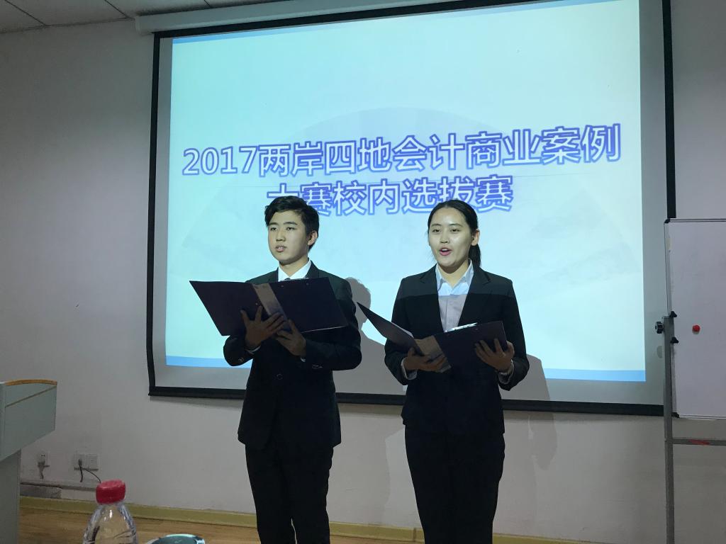 2017年11月30日,两岸四地会计与商业案例校内选拔赛在长江路校区一教411教室举行。由中国国际商会商业行业商会与中国商业会计学会共同发起、商业国际交流合作培训中心和华人策略研究论坛app会计系承办的会计与商业管理案例竞赛致力于提高大学生应用财务与会计信息开展商业研究和解决实际问题的能力,促进两岸四地财务与会计教育的互动与交流,推动“财务与会计服务”为代表的服务贸易的发展。
