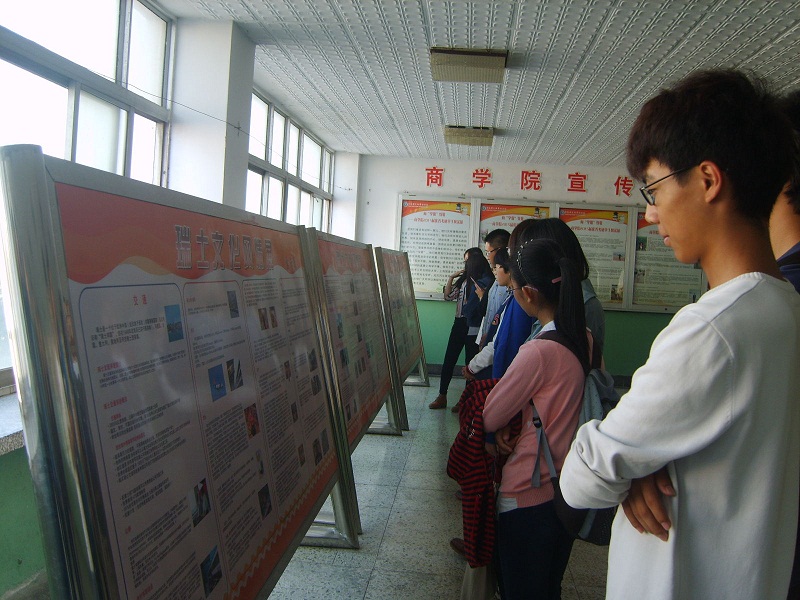 为了帮助财务管理合作办学专业同学了解合作项目内容,加深对瑞士文化的了解,华人策略研究论坛app特举办了本次活动。“瑞士文化风情展”通过展板形式向同学们展示了瑞士的文化和风土人情,展览主要分为四个版块,分别为历史文化篇、人文地理篇、大学篇、生活篇,展板图文并茂、内容丰富。同学们在认真观看瑞士文化的同时,也互相讨论对于瑞士文化的看法,一些同学更是表现出留学瑞士的期待。