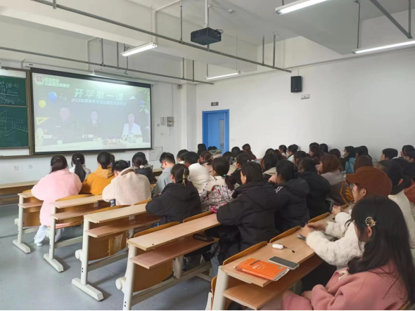 坚持党团联动,上好第一堂主题团课。各班团支部集中观看《开学第一课》2023年春季开学法治教育主题节目,团支部书记带领同学们深入学习党的二十大报告、学习习近平总书记有关重要论著和系列著作,围绕疫情防控转入“乙类乙管”等社会热点话题开展讨论,进一步宣传贯彻落实党的二十大精神,切实增强了同学们尊法、学法、守法、用法的意识。