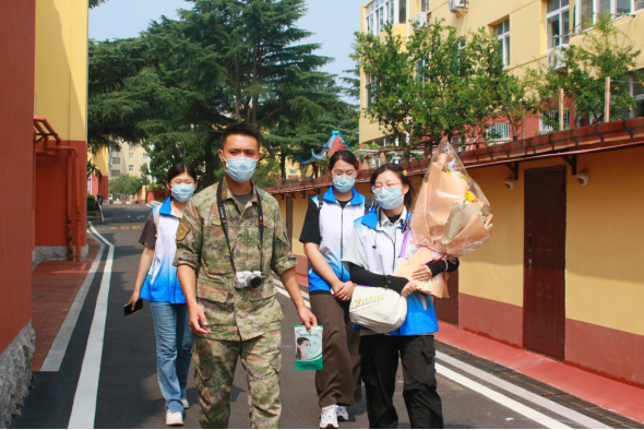 “‘哪有什么岁月静好,不过是有人替你负重前行。’新时代的负重前行,是守疆戍边;战争年代的负重前行,是以牺牲自我为代价,与敌搏杀、保卫祖国。过去,因为英雄人物离我们比较久远,大家可能只是在课本上看到过、从大人们那里听到过众多英雄故事,而今天有幸来到干休所参观探访,接触到依旧健在的英雄前辈,希望大家珍惜难得机会,深刻感悟红色革命精神。”青岛理工大学学生工作处副处长、人民武装部副部长王栋栋向团队成员们语重心长地说道。