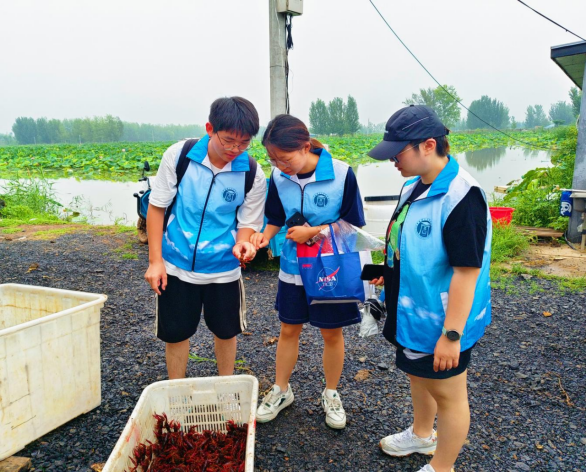 访电商基地,集专业之智。调研后期,团队成员集中参观鱼台县鱼米公司龙虾养殖基地,学习稻虾共作种养模式的原理,与养殖人员共同体会收获的喜悦。随后,实践团走进山东金驰食品有限公司,深入了解其企业文化、绿色产业链、南北仓库的特色农副产品和以打造区域内互联网产业生态综合平台为主的电商服务业。在公司负责人张迪的专业指导下,团队成员充分利用电商专业知识,借助特色木耳、木耳丝等干货菌类,开展实时直播,探索直播带货的先进技术,协助公司搭建拼多多线上销售平台,提高农产品销售量。这不仅有利于增强村民“互联网+农业”的创新发展意识,而且能够引导其深刻领悟电商助农的时代意义。