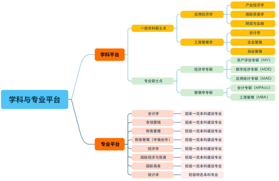 学院现有应用经济学、工商管理两个硕士学位授权一级学科,设有应用经济学、工商管理2个学术硕士授权专业,并有会计(MPAcc)、应用统计(MAS)、资产评估(MV)、数字经济(MDE)和工商管理(MBA)5个硕士授权专业。同时,设有7个本科专业,分别是会计学、市场营销、财务管理、经济学、国际经济与贸易、国际商务、统计学。其中,财务管理专业包括财务管理普通本科专业和财务管理中瑞国际合作本科专业。